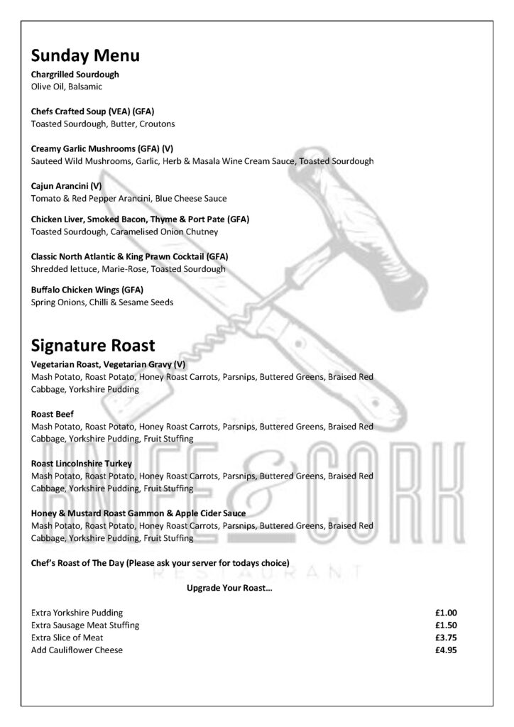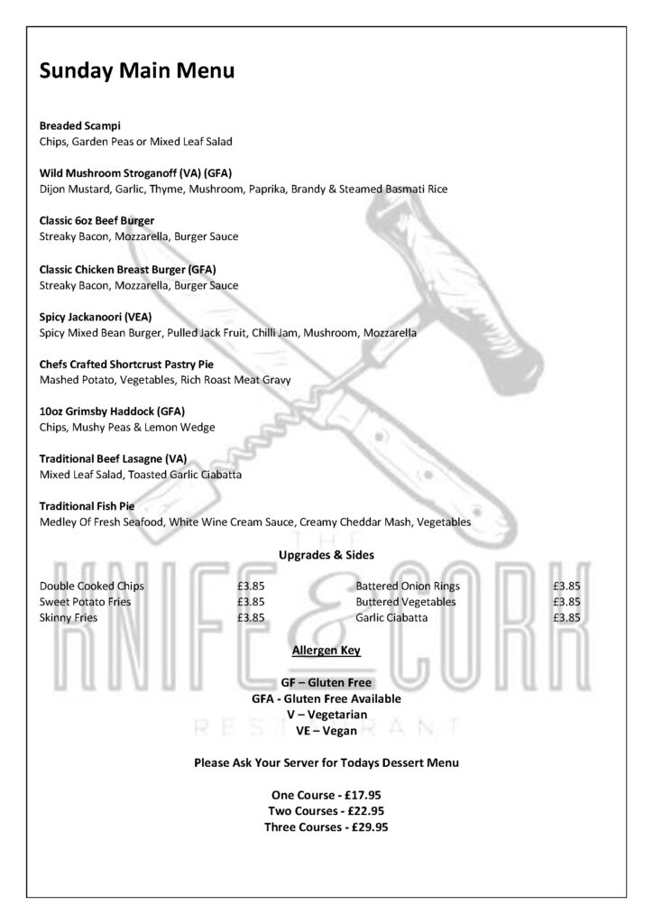 The new ‘ Knife & Cork’ Restaurant boasts the best food in the area recently awarded by Lincolnshire Today, offering dishes from traditional pub classics such as Fish & Chips & Sausage and Mash to unique specials such as Pan Fried Monkfish or Roasted Duck Breast